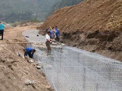 根據工程設計要求,可將引線網袋組裝成罐籠,并與砌塊石等填充材料連接,成為路基防護的新技術。